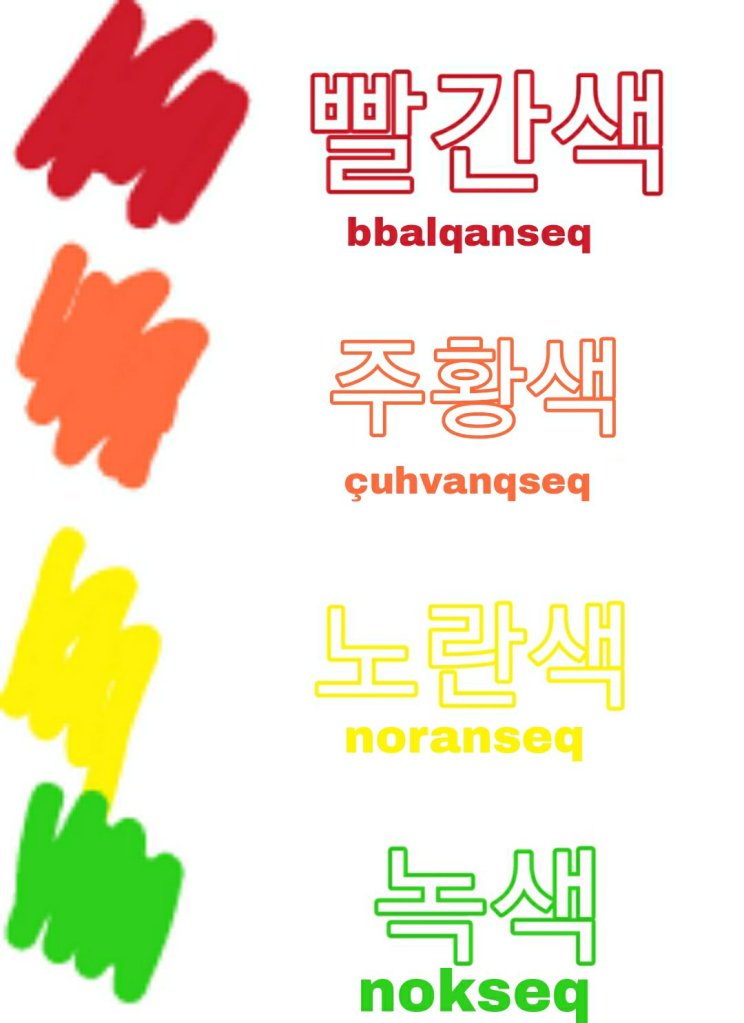 Məsələn ; 1. 당신이 제일 좋아하는 색은 무슨입니까? (Sənin ən sevdiyin rəng hansıdır?) 2. 파란색입니다 (mavidir)